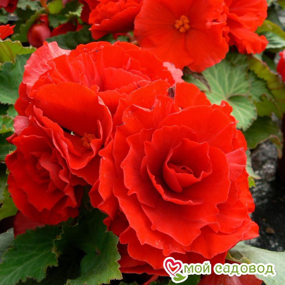 Бегония махровая Скарлет – клубневое растение высотой 25-35см. Красивы ее зеленые сердцеобразные листья с неровно зубчатыми краями, прекрасны и махровые ярко алые цветки, похожие на розочки, диаметром до 11см. Бегония хороша для озеленения помещений, лоджий, балконов и для клумб, цветников и рабаток. В районах с мягким климатом разводят в открытом грунте, в более холодных районах высаживают на балконах или в саду только на летний период. Бегония любит рыхлый питательный грунт со слабокислой реакцией. Оптимальная схема посадки 20х30 см.Сделайте дренаж. Поливайте регулярно и умеренно. Раз в месяц подкармливайте минеральным удобрением. В период покоя обеспечьте прохладную зимовку. Чтобы растения зацвели к началу лета, посев на рассаду делают в январе-марте. Заделка не требуется. Просто равномерно распределите по рыхлому торфяному субстрату.
